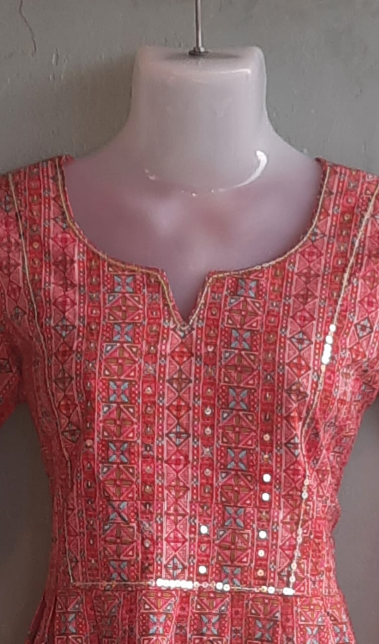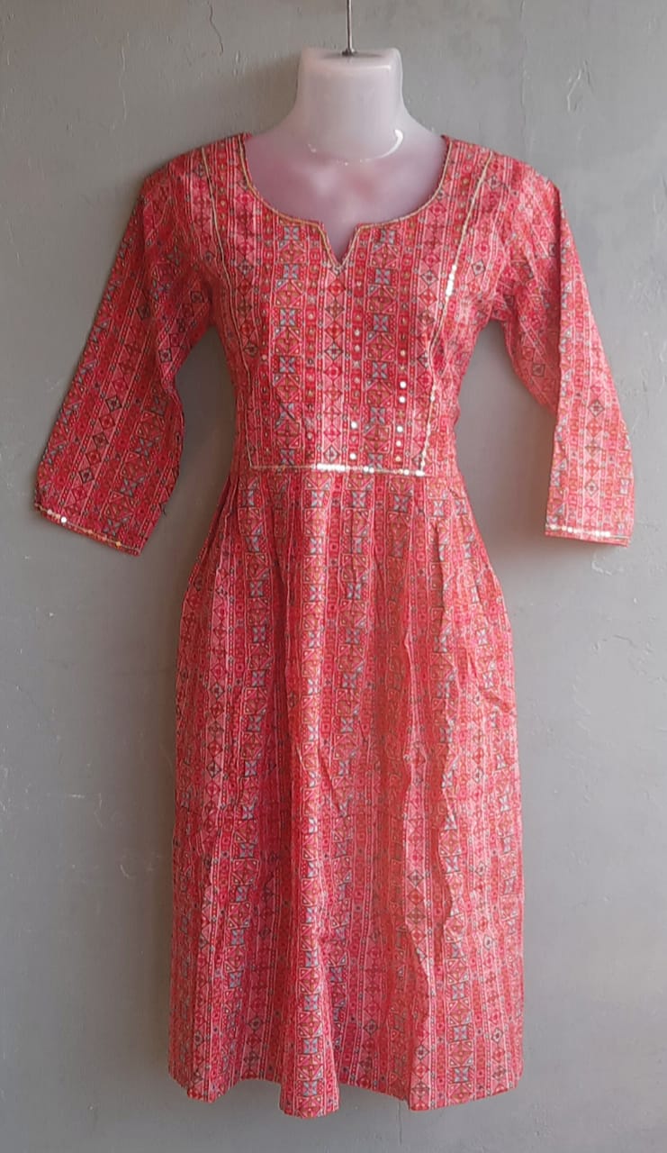 Pink Jaipuri Small Print Kurti with Tikki Work