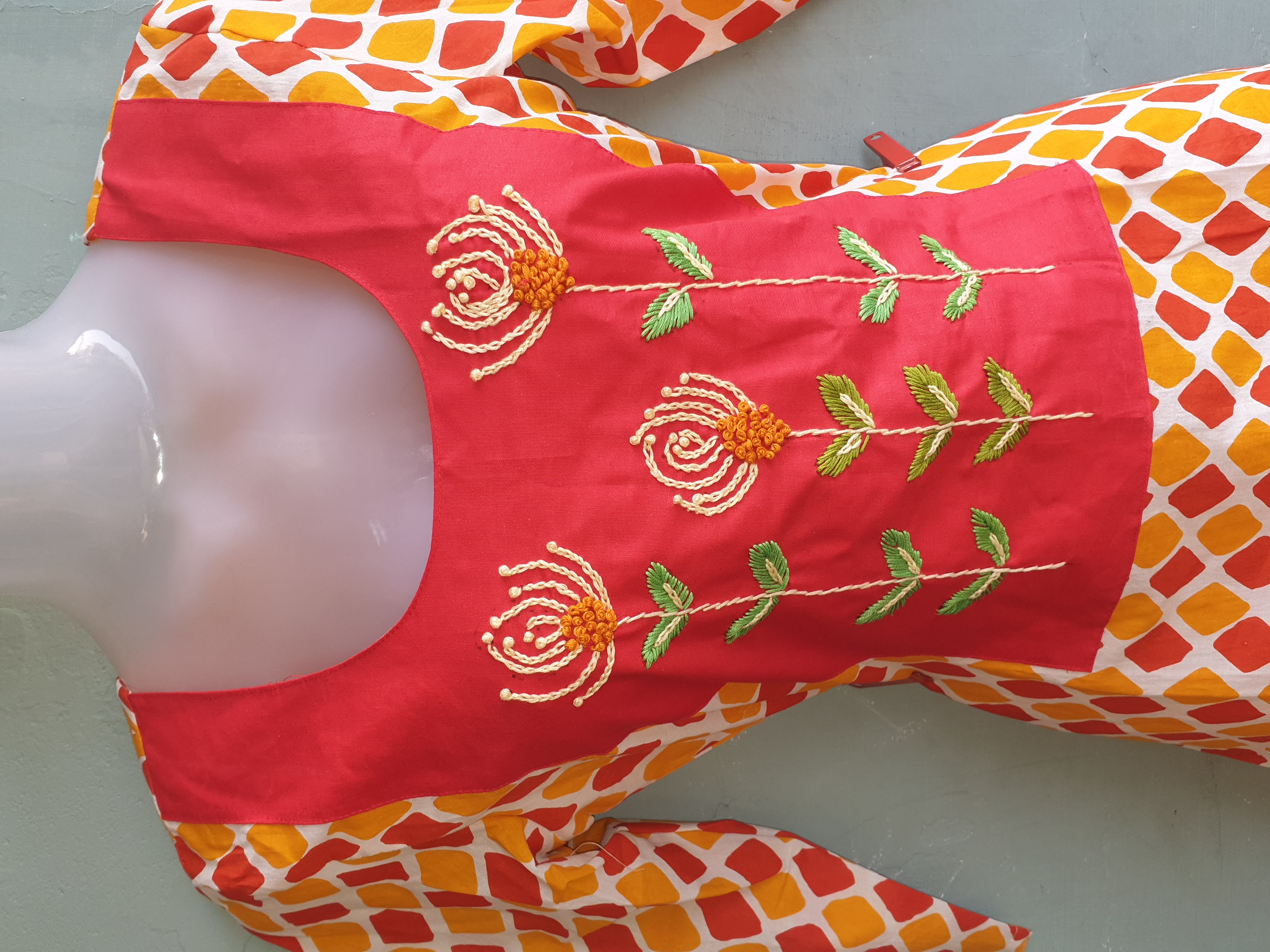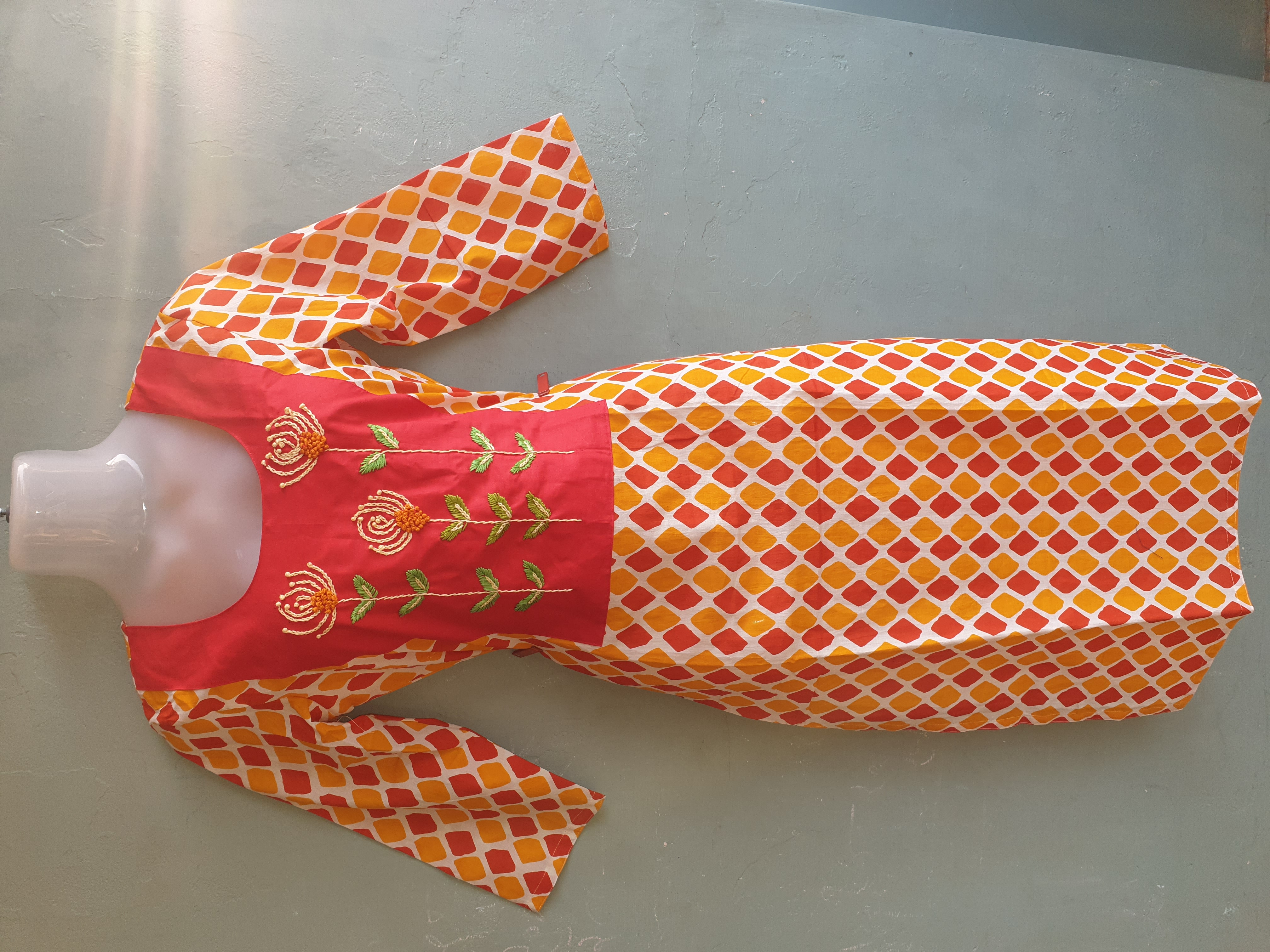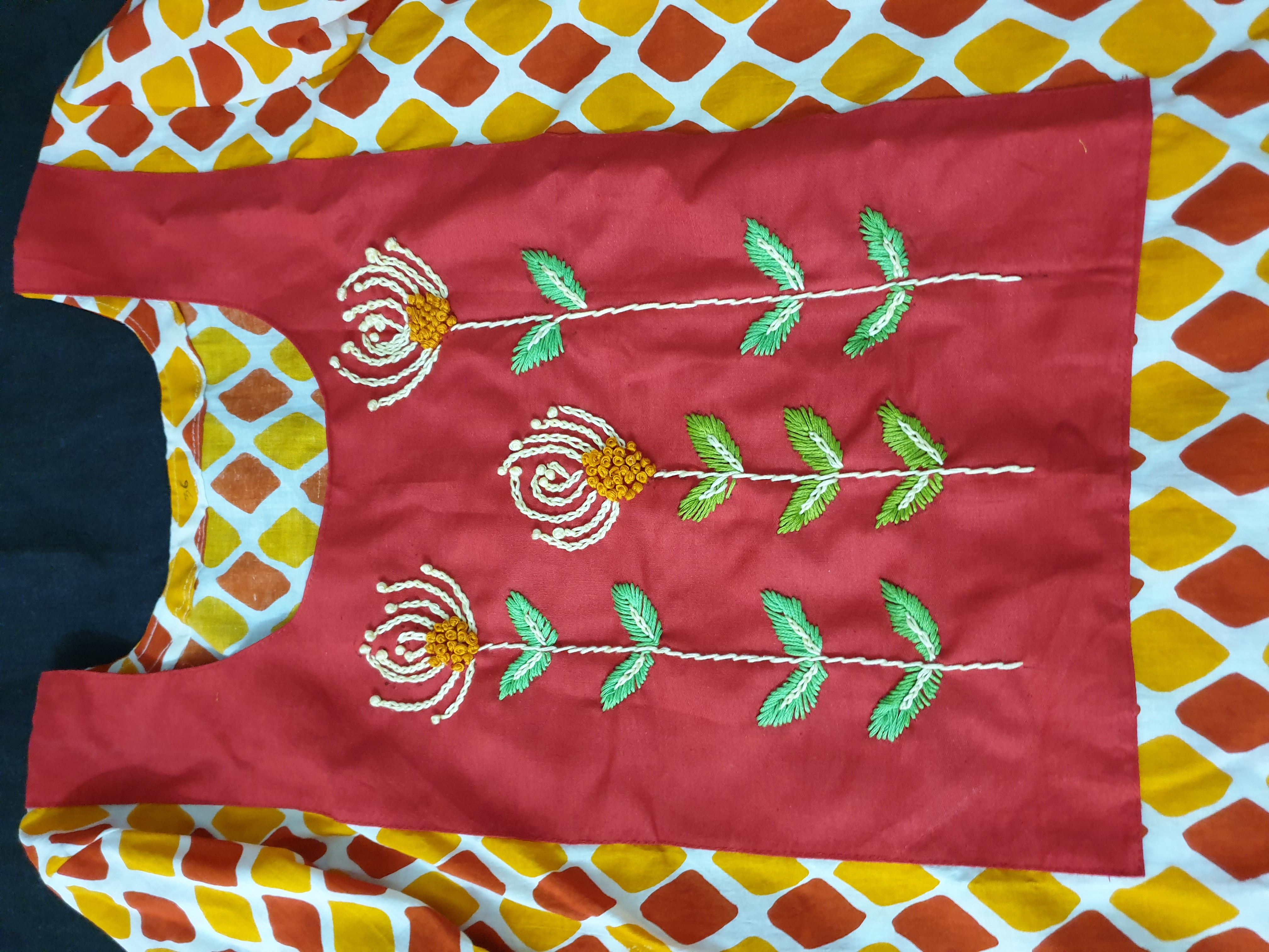 Multi Color Cotton Kurti with Patch Hand Work